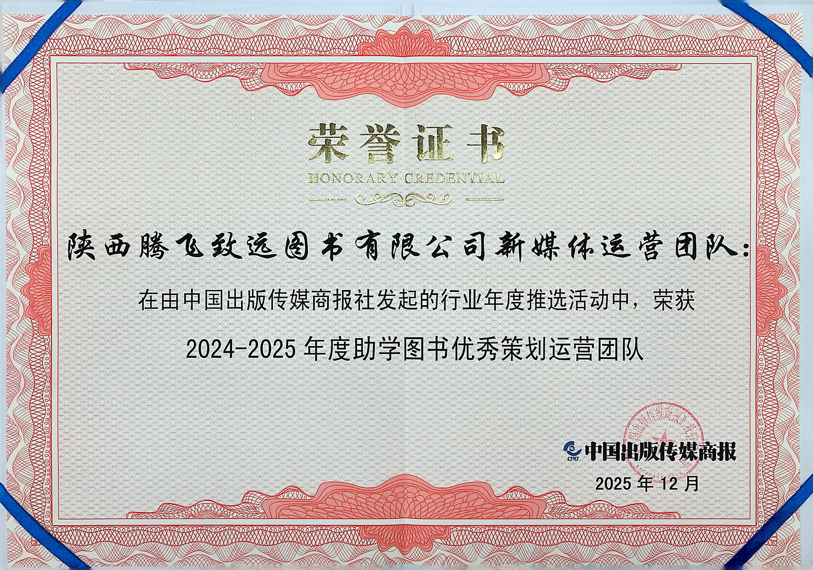 2025:旗下腾飞致远公司新媒体运营团队获助学图书优秀策划运营团队(2024-2025年度)