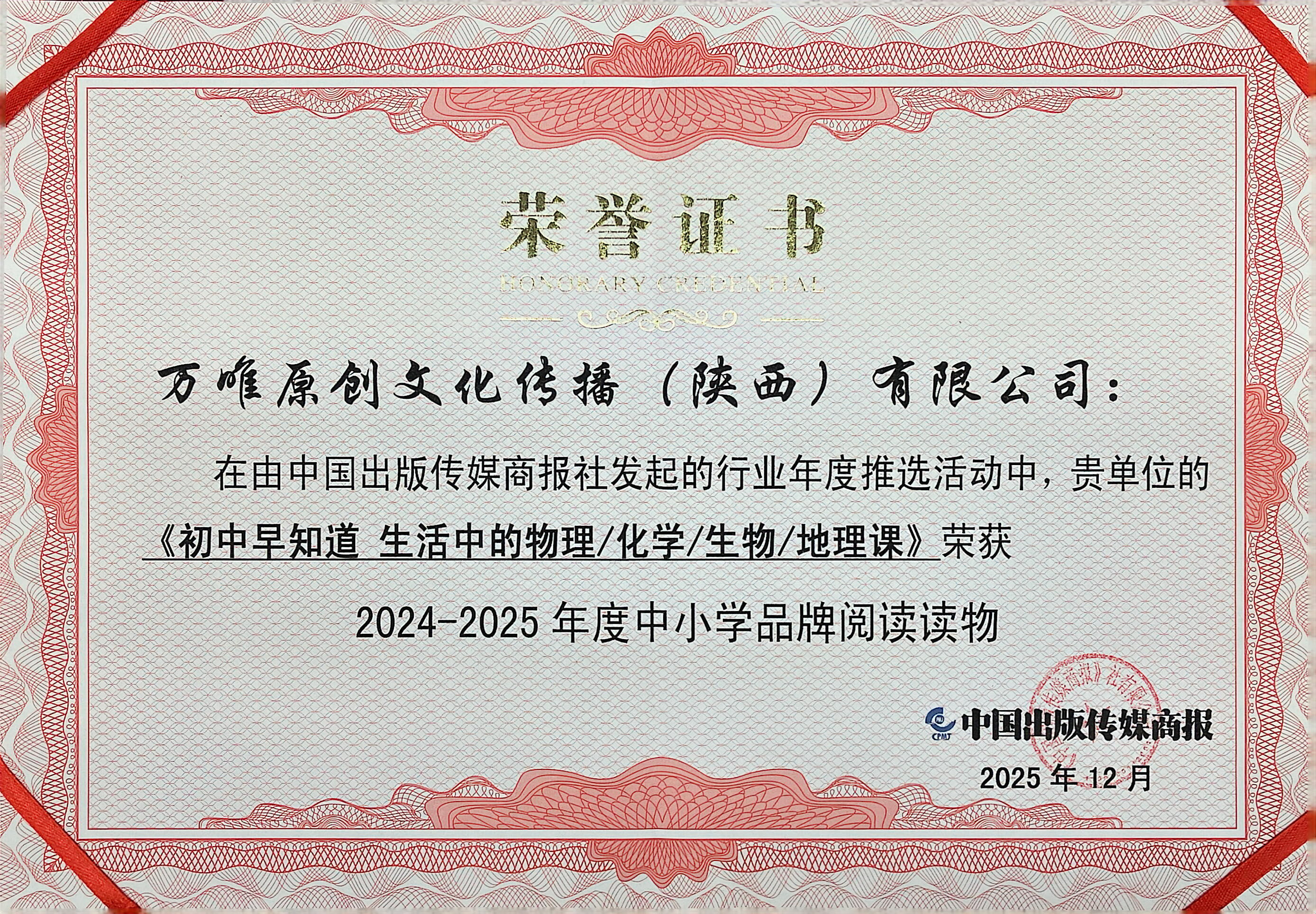 2025:《初中早知道 生活中的物理/化学/生物/地理课》获中小学品牌阅读读物(2024-2025年度)