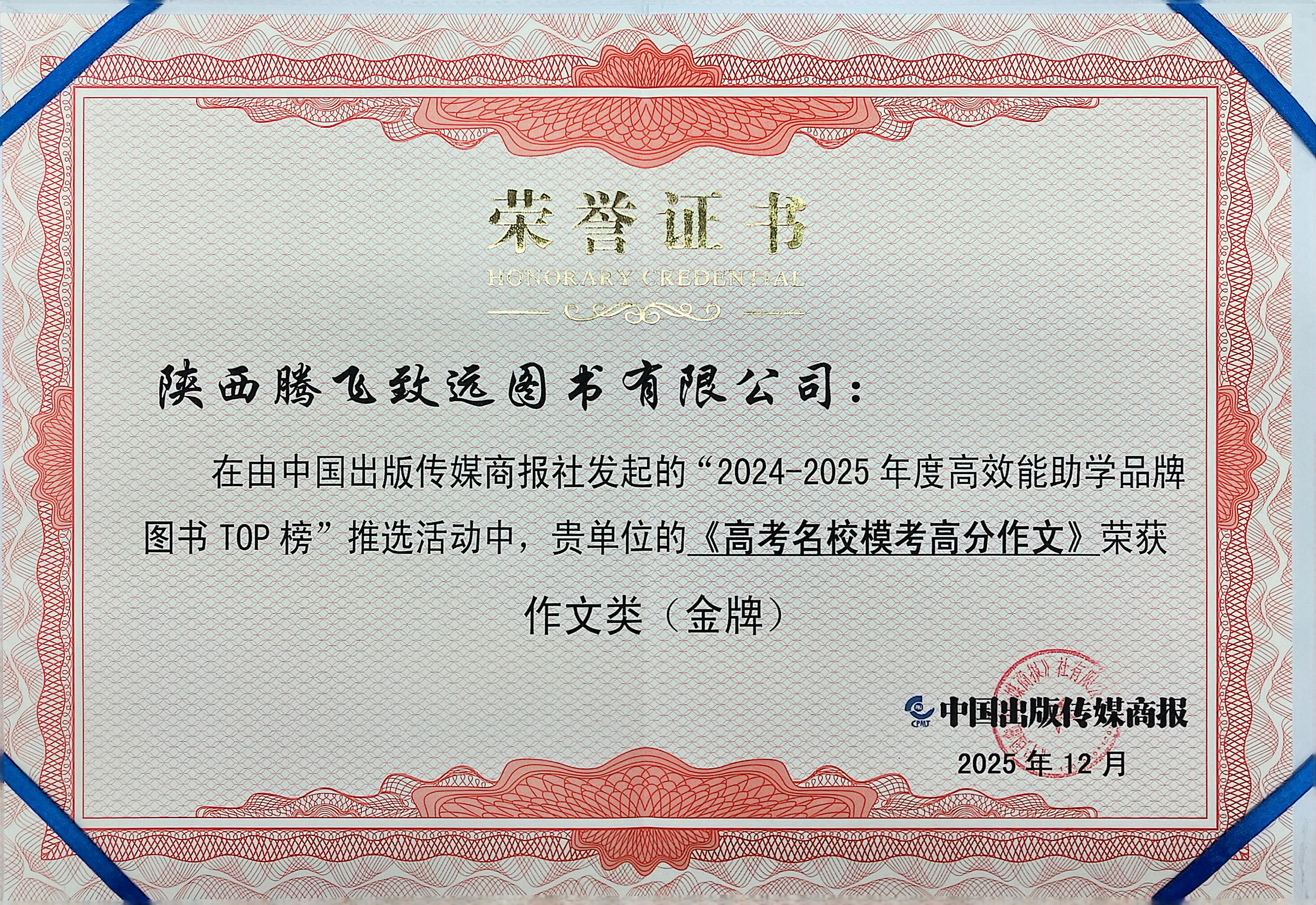 2025:《高考名校模考高分作文》获高效能助学品牌图书TOP榜·作文类(金牌)(2024-2025年度)