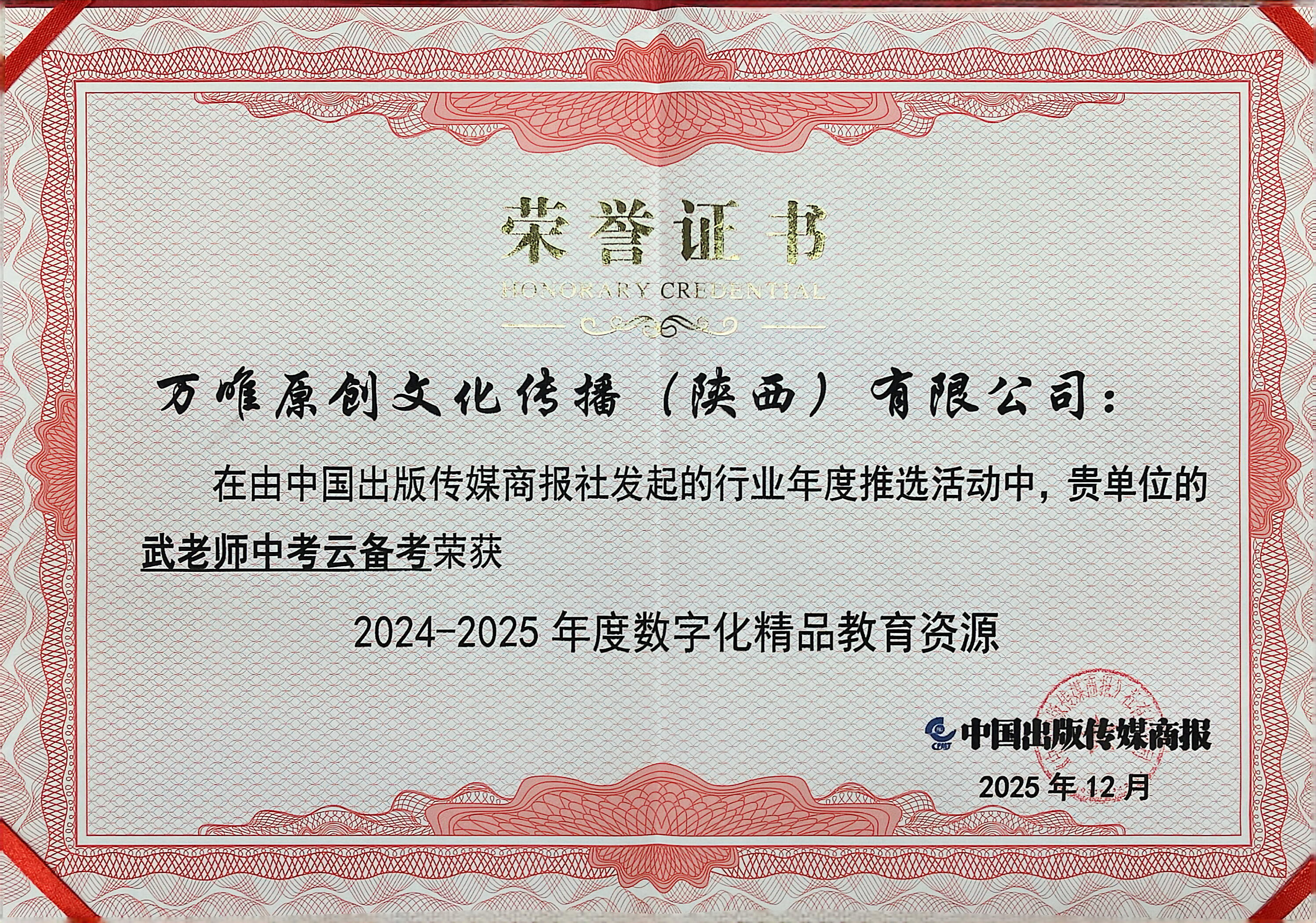 2025:万唯中考千人研究院获助学图书优秀策划运营团队(2024-2025年度)