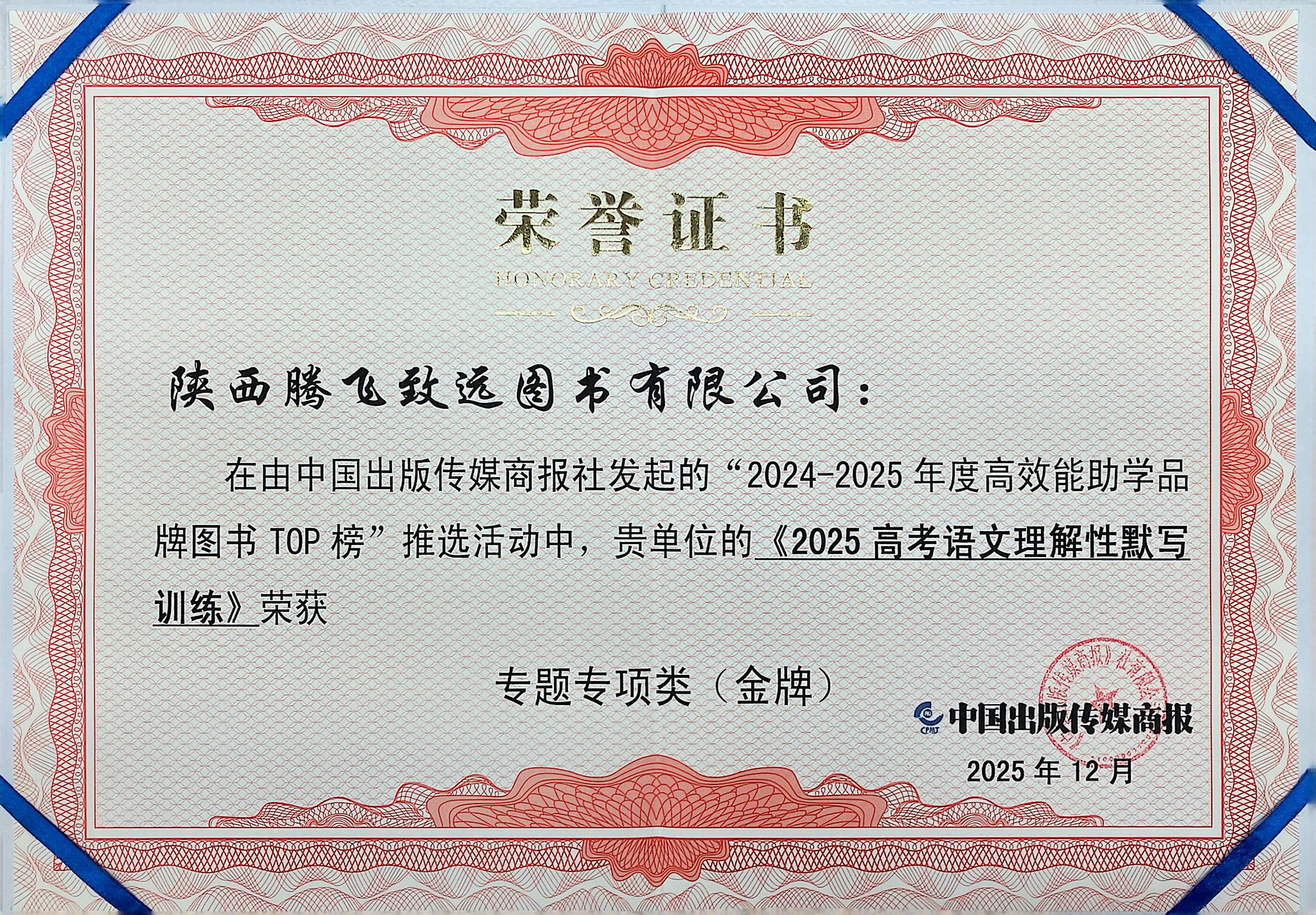 2025:《2025高考语文理解性默写训练》获高效能助学品牌图书TOP榜·专题专项类(金牌)(2024-2025年度)