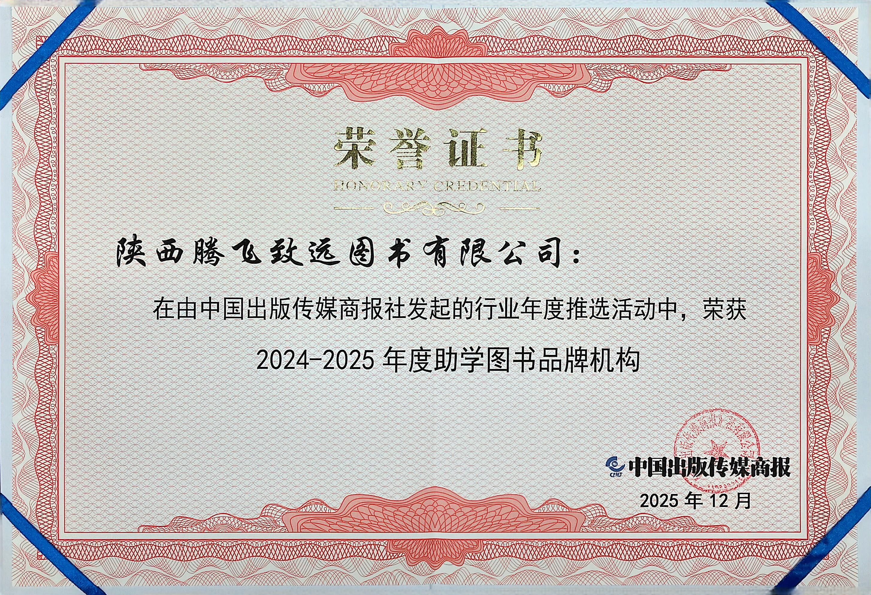 2025:旗下腾飞致远公司获助学图书品牌机构(2024-2025年度)